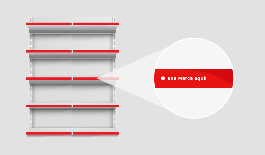 Dê ainda mais destaque a um produto inserindo as faixas em frente ao mesmo nas prateleiras e/ou gôndolas, garantindo mais visibilidade e credibilidade, principalmente se houver ação promocional ativa.